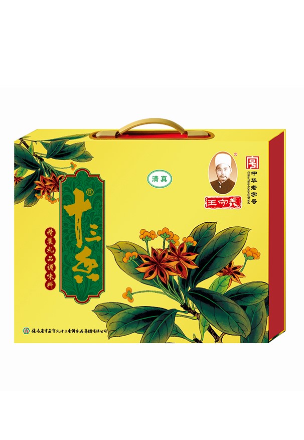 內(nèi)裝調(diào)味料:花椒粉35克,十三香調(diào)味品35克×2,精姜粉30克,餃子餡調(diào)味料40克,孜然粉40克,白胡椒粉50克,黑胡椒粉50克,燉肉料20克,燉雞料24克,包子餃子調(diào)味料35克,燒烤調(diào)味料35克,麻辣鮮調(diào)味料50克,炸雞料調(diào)味料(香酥)45克,炸雞料調(diào)味料(麻辣)45克,雞精調(diào)味料40克。